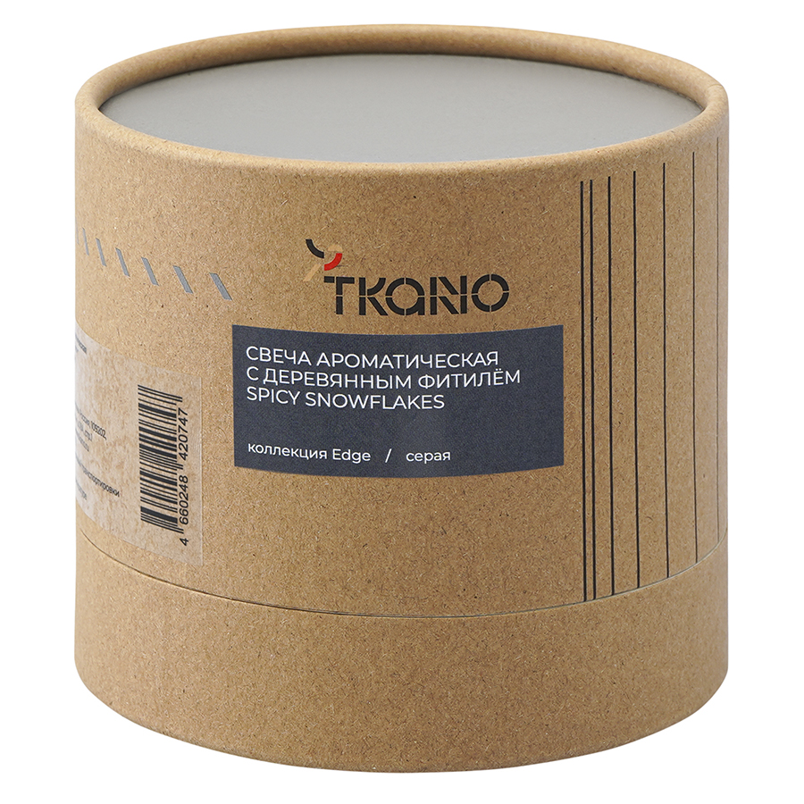 Свеча ароматическая с деревянным фитилём Spicy Snowflakes из коллекции Edge, серый, 60 ч, Tkano