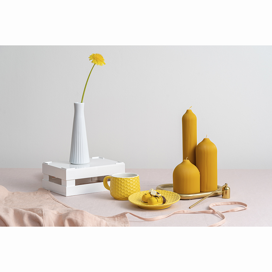 "Свеча декоративная цвета карри из коллекции Edge в современном дизайне, вдохновленном русскими традициями, отлично подойдет для домашнего декора и создания уютной атмосферы в интерьере. Фактурные грани и округлая поверхность свечи отсылают нас к образу купола – простая и лаконичная форма, плавные изгибы и идеальные пропорции. Изготовлена вручную, без ароматизаторов, поэтому может использоваться для сервировки праздничного стола и повседневных ужинов. , ,
