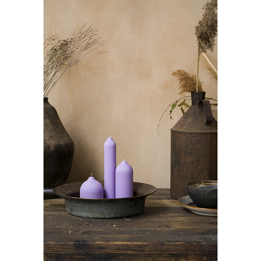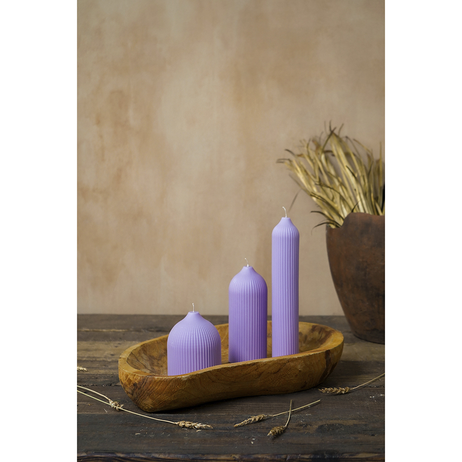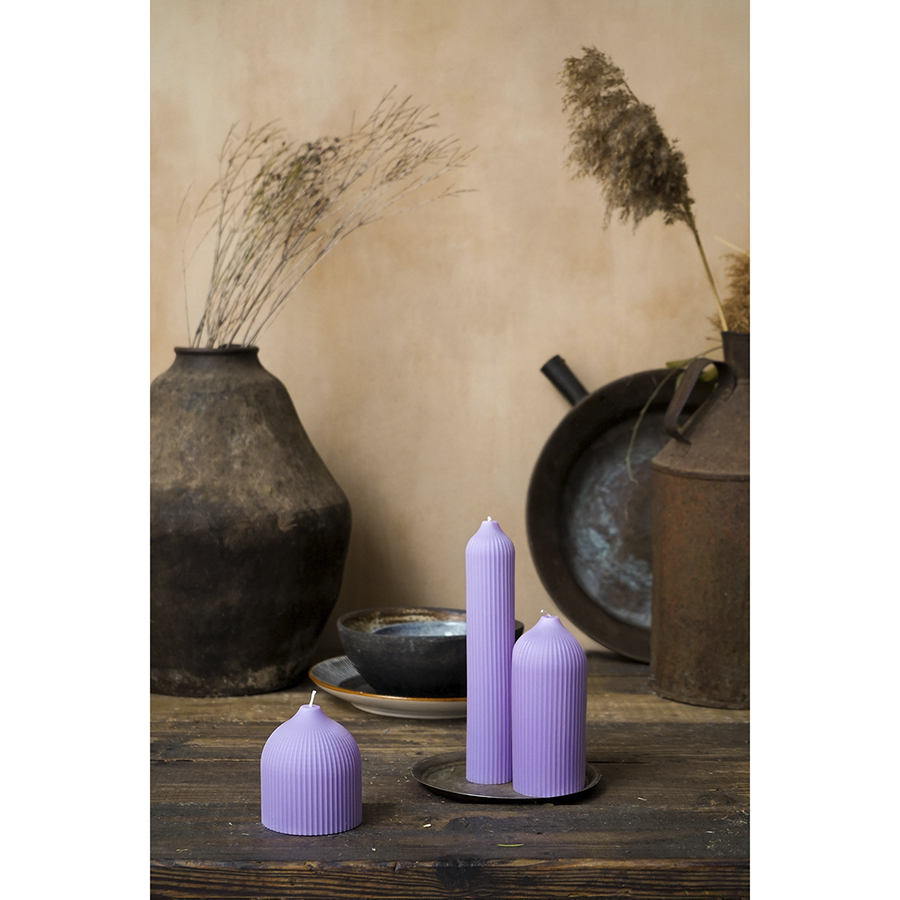 "Свеча декоративная цвета лаванды из коллекции Edge в современном дизайне, вдохновленном русскими традициями, отлично подойдет для домашнего декора и создания уютной атмосферы в интерьере. Фактурные грани и округлая поверхность свечи отсылают нас к образу купола – простая и лаконичная форма, плавные изгибы и идеальные пропорции. Изготовлена вручную, без ароматизаторов, поэтому может использоваться для сервировки праздничного стола и повседневных ужинов. , ,