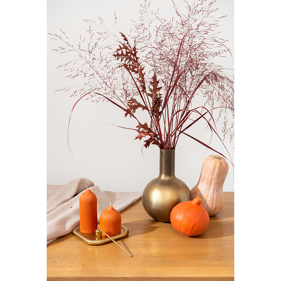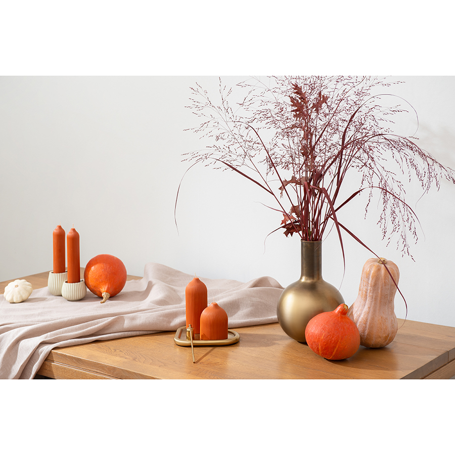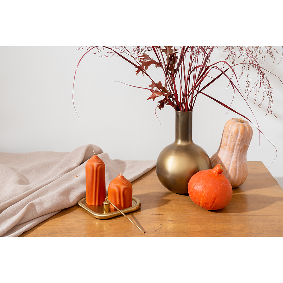 "Свеча декоративная оранжевого цвета из коллекции Edge в современном дизайне, вдохновленном русскими традициями, отлично подойдет для домашнего декора и создания уютной атмосферы в интерьере. Фактурные грани и округлая поверхность свечи отсылают нас к образу купола – простая и лаконичная форма, плавные изгибы и идеальные пропорции. Изготовлена вручную, без ароматизаторов, поэтому может использоваться для сервировки праздничного стола и повседневных ужинов. , ,