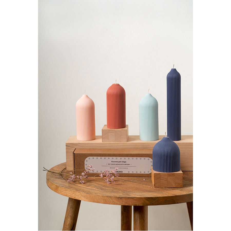 "Свеча декоративная синего цвета из коллекции Edge в современном дизайне, вдохновленном русскими традициями, отлично подойдет для домашнего декора и создания уютной атмосферы в интерьере. Фактурные грани и округлая поверхность свечи отсылают нас к образу купола – простая и лаконичная форма, плавные изгибы и идеальные пропорции. Изготовлена вручную, без ароматизаторов, поэтому может использоваться для сервировки праздничного стола и повседневных ужинов. , ,