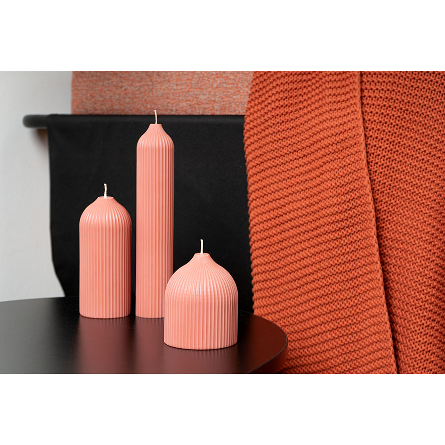 "Свеча декоративная терракотового цвета из коллекции Edge в современном дизайне, вдохновленном русскими традициями, отлично подойдет для домашнего декора и создания уютной атмосферы в интерьере. Фактурные грани и округлая поверхность свечи отсылают нас к образу купола – простая и лаконичная форма, плавные изгибы и идеальные пропорции. Изготовлена вручную, без ароматизаторов, поэтому может использоваться для сервировки праздничного стола и повседневных ужинов. , ,