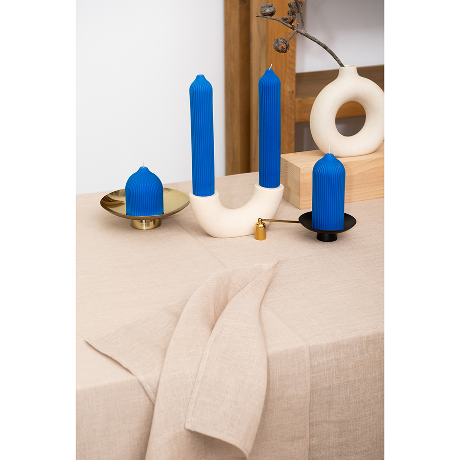 "Свеча декоративная ярко-синего цвета из коллекции Edge в современном дизайне, вдохновленном русскими традициями, отлично подойдет для домашнего декора и создания уютной атмосферы в интерьере. Фактурные грани и округлая поверхность свечи отсылают нас к образу купола – простая и лаконичная форма, плавные изгибы и идеальные пропорции. Изготовлена вручную, без ароматизаторов, поэтому может использоваться для сервировки праздничного стола и повседневных ужинов. , ,