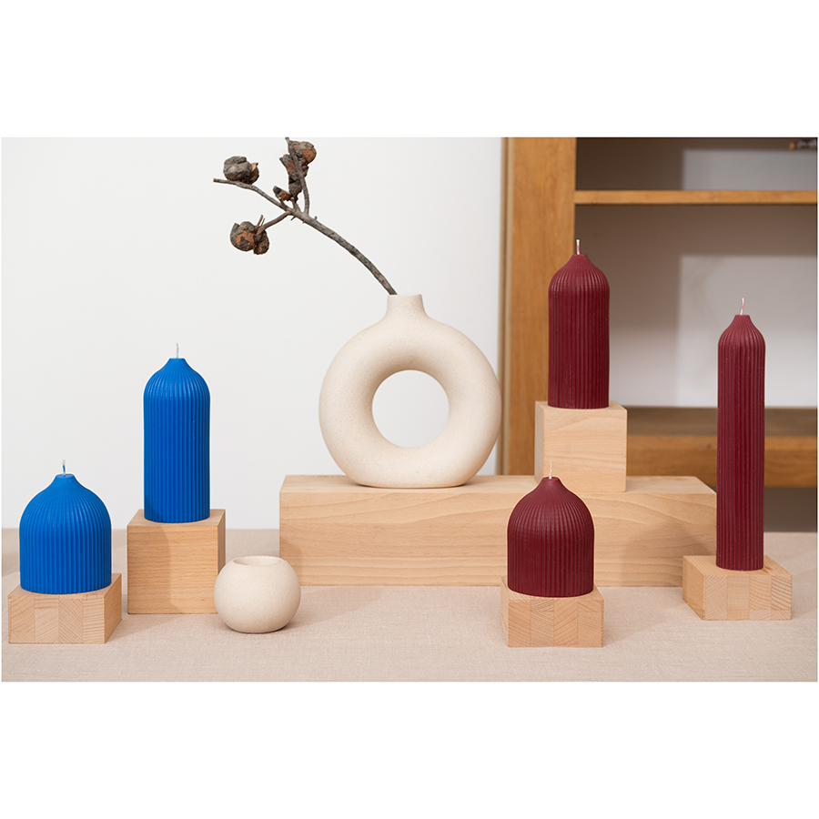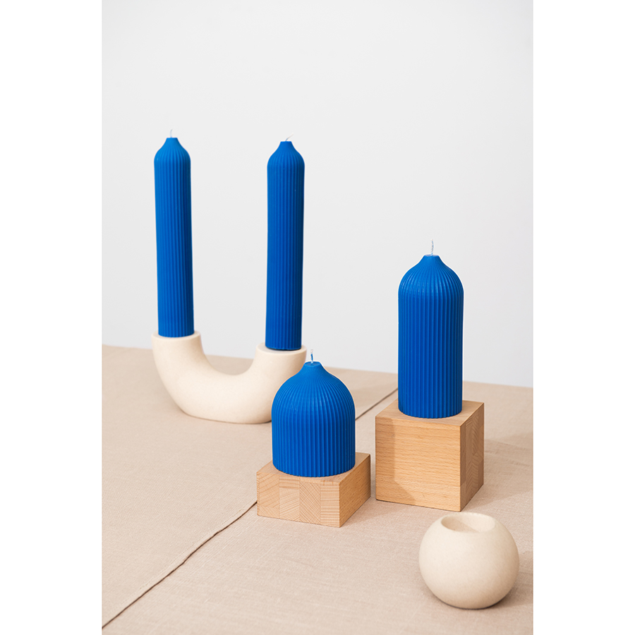 "Свеча декоративная ярко-синего цвета из коллекции Edge в современном дизайне, вдохновленном русскими традициями, отлично подойдет для домашнего декора и создания уютной атмосферы в интерьере. Фактурные грани и округлая поверхность свечи отсылают нас к образу купола – простая и лаконичная форма, плавные изгибы и идеальные пропорции. Изготовлена вручную, без ароматизаторов, поэтому может использоваться для сервировки праздничного стола и повседневных ужинов. , ,