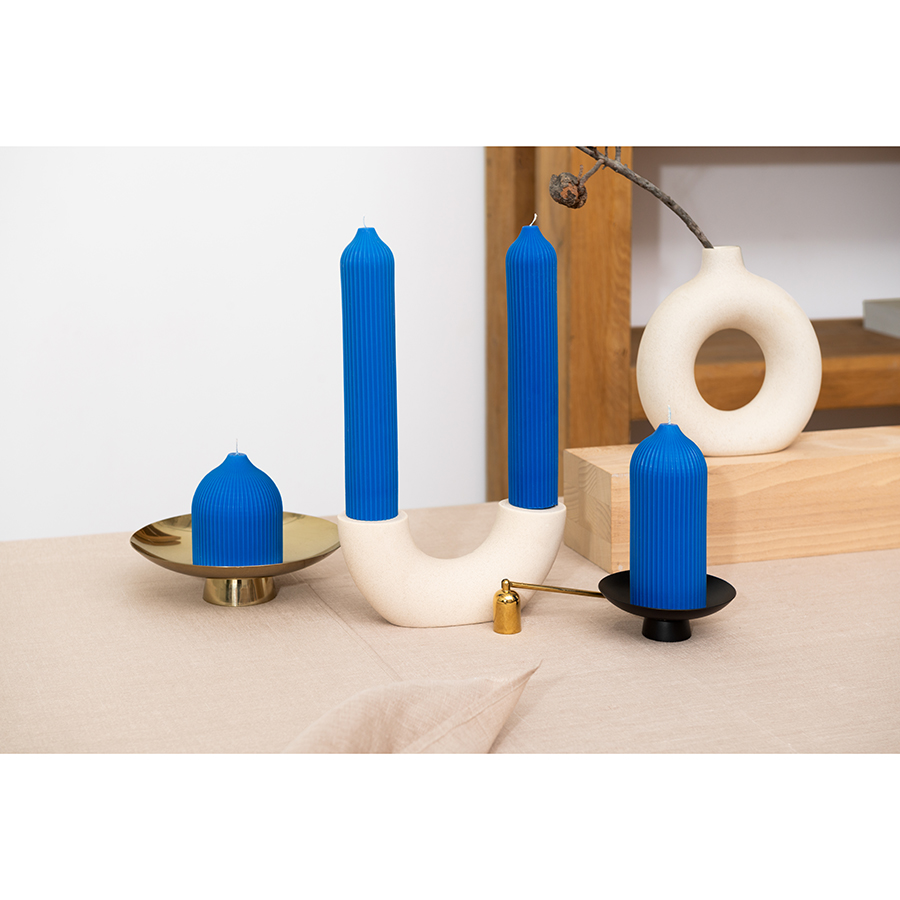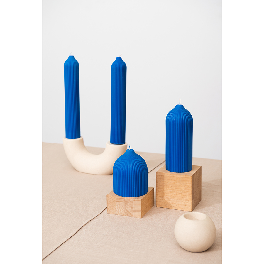 "Свеча декоративная ярко-синего цвета из коллекции Edge в современном дизайне, вдохновленном русскими традициями, отлично подойдет для домашнего декора и создания уютной атмосферы в интерьере. Фактурные грани и округлая поверхность свечи отсылают нас к образу купола – простая и лаконичная форма, плавные изгибы и идеальные пропорции. Изготовлена вручную, без ароматизаторов, поэтому может использоваться для сервировки праздничного стола и повседневных ужинов. , ,