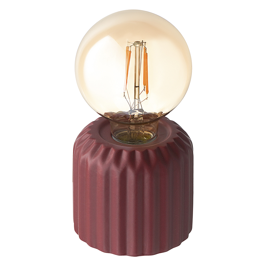 "Светильник декоративный бордового цвета из коллекции Edge с дизайном, вдохновленным русскими традициями, отлично подойдет для украшения интерьера и создания в помещении уютной, расслабляющей атмосферы. Фактурные грани и округлая поверхность его основания из керамики отсылают нас к образу купола – символу духовного подъема и стремления к совершенству. Небольшие размеры позволяют размещать этот функциональный декор в любом удобном месте. Для работы требуются 2 батарейки типа АА, которые не входят в комплект. Лампочка в светильнике не выкручивается и не подлежит замене.