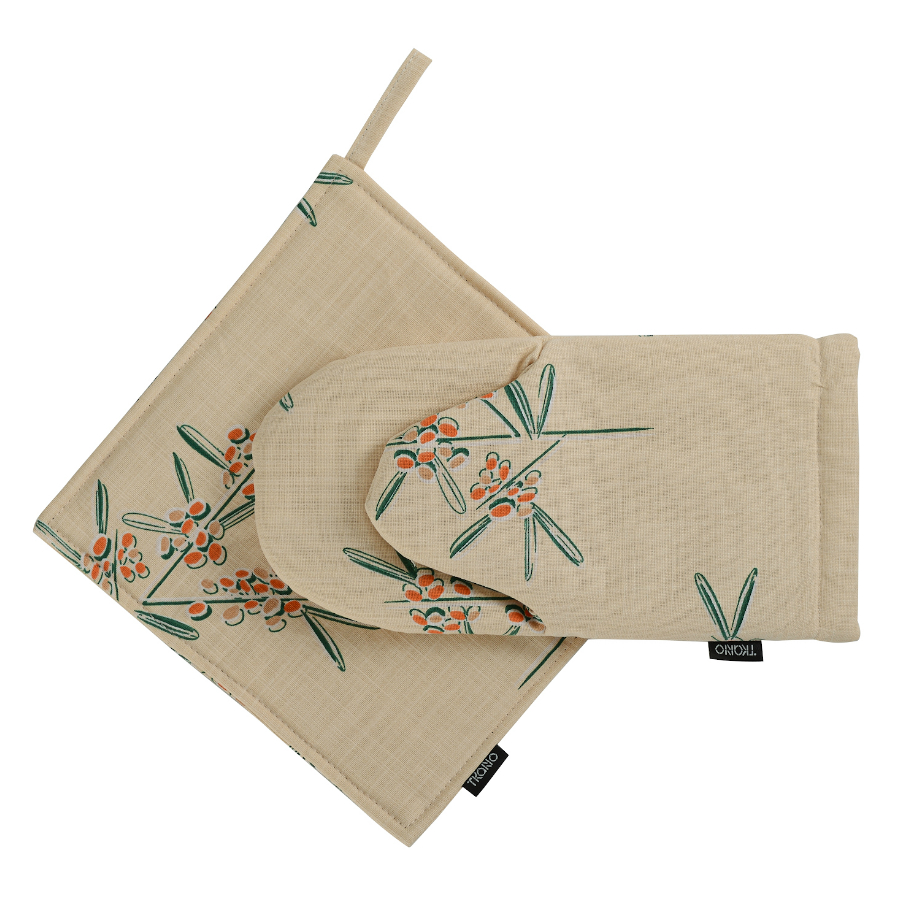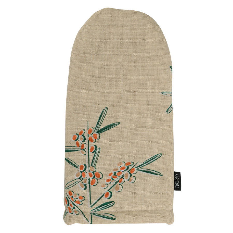 Варежка-прихватка из хлопка с графичным принтом Обед рябинника из коллекции Russian North, 31х15 см