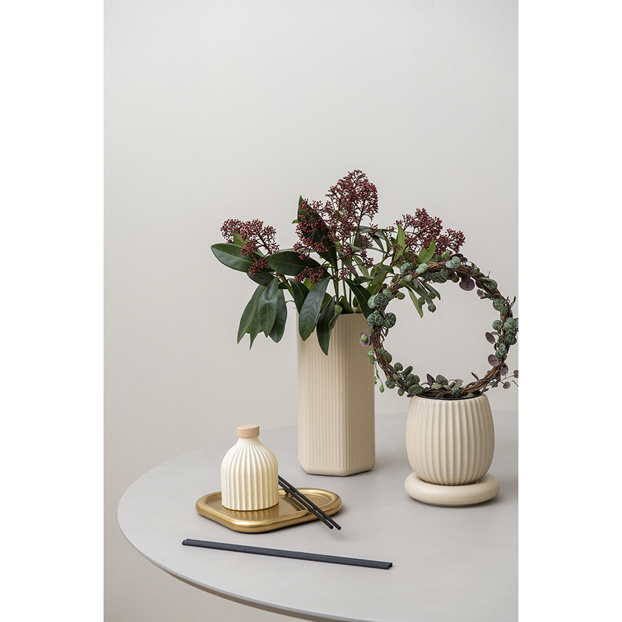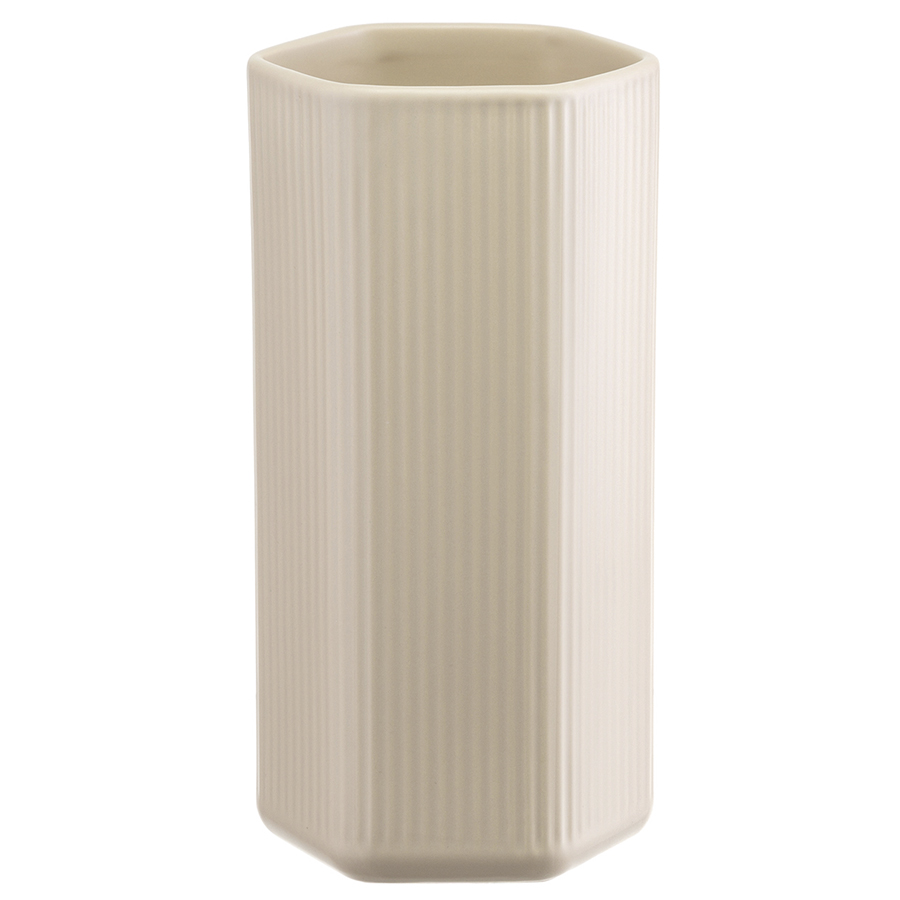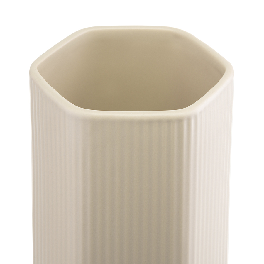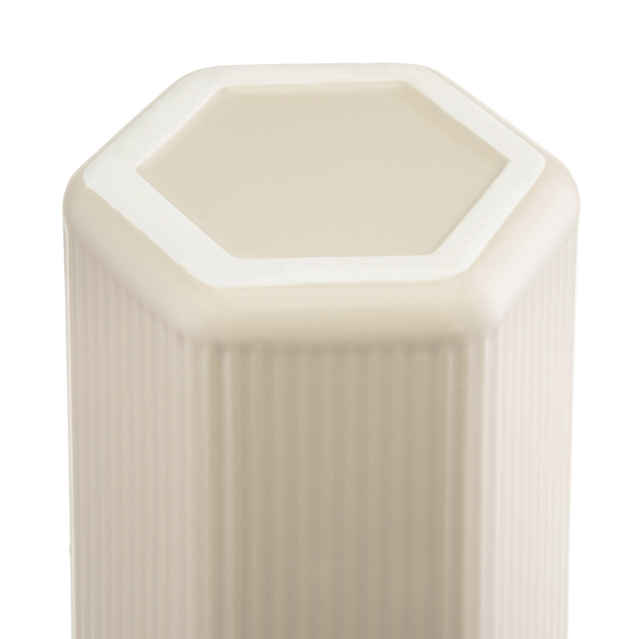 "Ваза кремового цвета из коллекции Edge подойдет как для букетов из живых цветов, так и для сухоцветов. Простая форма вазы с фактурными гранями будет сочетаться с другими предметами из этой же коллекции, позволяя создавать интересные интерьерные композиции. Изделие выполнено из доломита, устойчивого к сколам, легкого и экологически чистого материала, снаружи и внутри покрыто матовой глазурью.