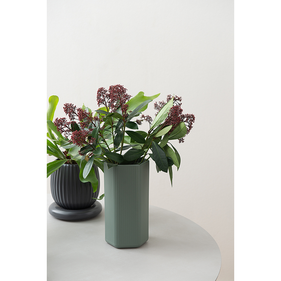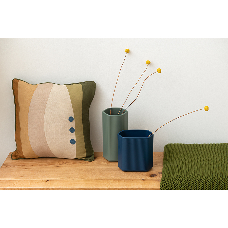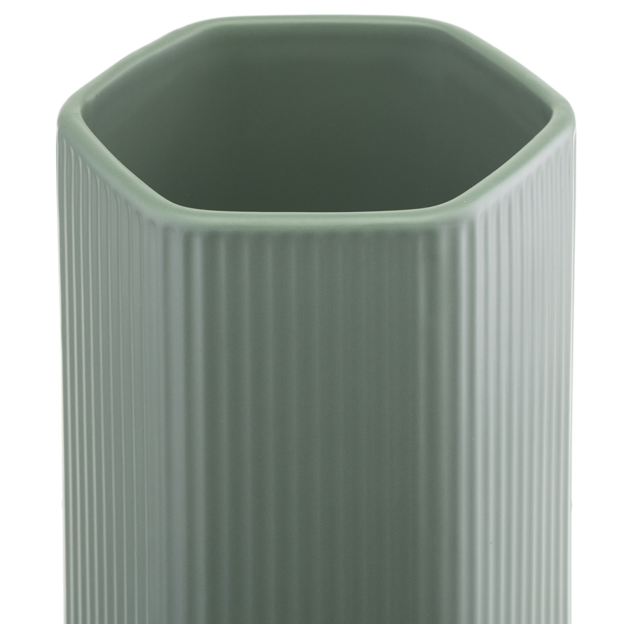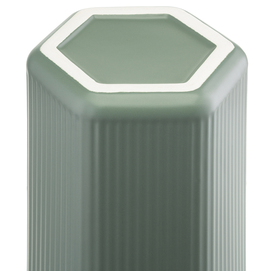 "Ваза мятного цвета из коллекции Edge подойдет как для букетов из живых цветов, так и для сухоцветов. Простая форма вазы с фактурными гранями будет сочетаться с другими предметами из этой же коллекции, позволяя создавать интересные интерьерные композиции. Изделие выполнено из доломита, устойчивого к сколам, легкого и экологически чистого материала, снаружи и внутри покрыто матовой глазурью.