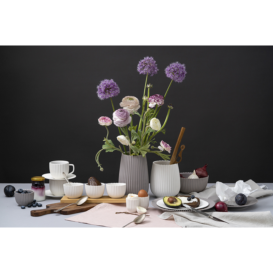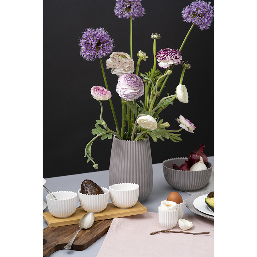 "Небольшая серая ваза из коллекции Edge подойдет для живых цветов, сухоцветов или пряной зелени. Простая форма вазы позволяет вписать ее в любой интерьер, а фактурная поверхность будет красиво бликовать на свету. Ваза сделана из фарфора — легкого, прочного и устойчивого к сколам материала, за которым , ,легко ухаживать.